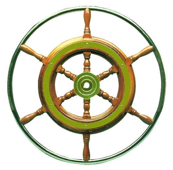 Ahşap dümen, paslanmaz çelik tutamaklı. Ahşap dümen, paslanmaz çelik tutamaklı.