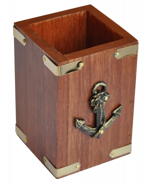 Ahşap kalemlik. Çıpa figürlü. 7x7x10.5 cm.