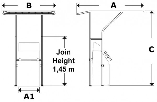 Ø 32 mm anodize alüminyum borudan mamul. Ayarlanabilir bağlantılarla her tip konsol için uygun. Su geçirmez ve UV dayanımlı Atlas polyester kumaş tente, bakım için sökülebilir.