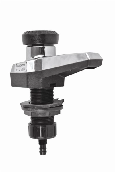Attwood Musluk Yüksek dayanımlı plastik. Musluk başlığına entegre switch ile basınç şaltersiz elektrikli pompayı açıp kapatarak veya basınçlı bir sistemde normal bir musluk olarak kullanılabilir.