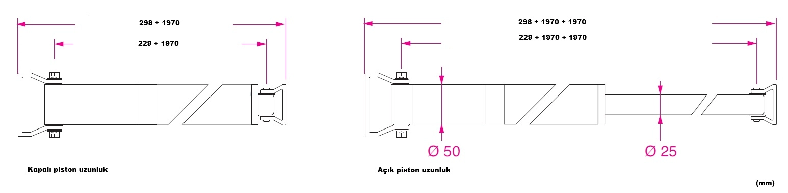 Silindir, piston ve bağlantı braketleri anodize hafif alaşımdan üretilmiştir.