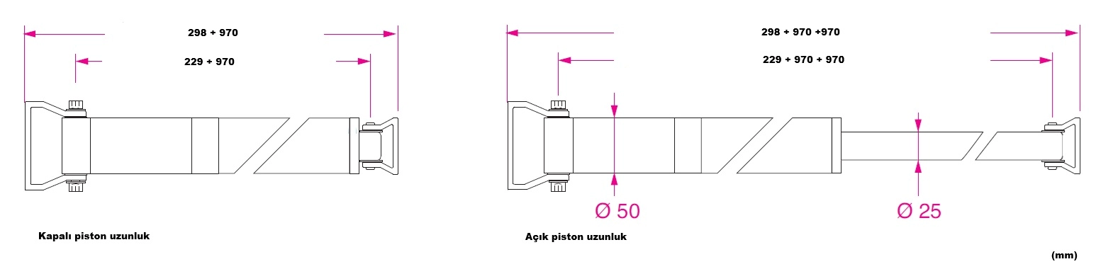 Silindir, piston ve bağlantı braketleri anodize hafif alaşımdan üretilmiştir.