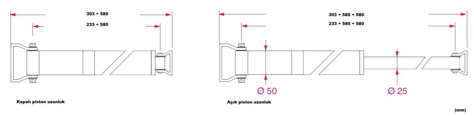 Silindir, piston ve bağlantı braketleri anodize hafif alaşımdan üretilmiştir.