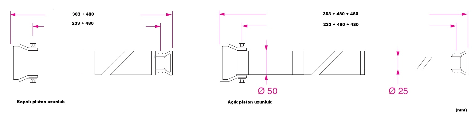 Silindir, piston ve bağlantı braketleri anodize hafif alaşımdan üretilmiştir.