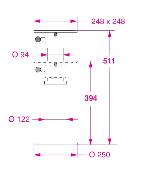Döner başlıklı, yaylı, gaz destekli teleskopik koltuk pedestali. Parlak yüzeyli ve anodize alüminyumdan üretilmiştir. Büyük koltuklar, hızlı yatlar ve çalışma tekneleri için uygundur. Yaylı üst yapı, dalga darbelerini yumuşatarak konforu artırır. Özenli yüzey kalitesi sayesinde her türlü kullanım ortamına uygundur. Teleskop mekanizmasının kumanda kolu, kullanım sırasında dikey ayar yapılmasına olanak tanır. Koltuk 360° döndürülebilir, ancak seyir sırasında kilitlenmelidir. Pedestal içindeki plastik burçlar, piston yüzeyinin çizilme riskini ortadan kaldırır. Ağırlık: 9.84 Kg.