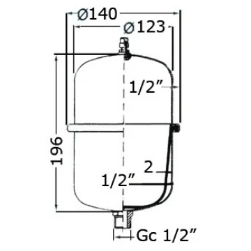 Paslanmaz çelik gövde ve butil diyaframlı. Üniversaldir, tüm hidroforlara uygulanabilir. ½” bağlantı, 1/10 bar çalışma basıncı.