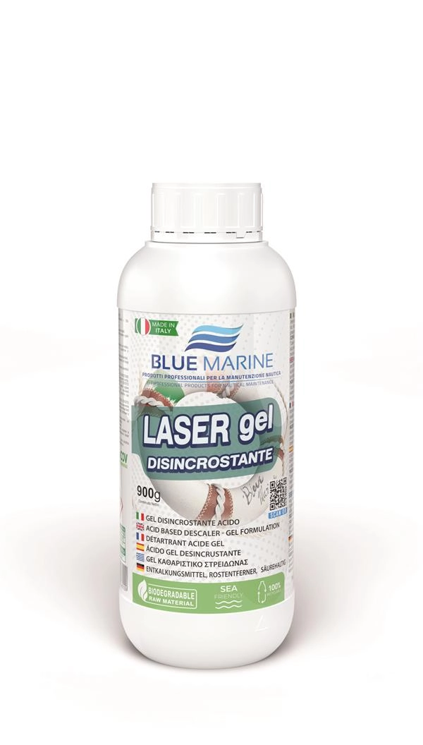 Gel formulation, acid based descaler and oxide remover. It removes any kind of incrustations and limestone debris (barnacles) from outdrives and hulls made of either fibreglass or rubber. Rust remover and surface brightener for propellers made of stainless steel, brass, bronze, etc.., and for any kind of surfaces of boat or inflatable boat. It also removes water-lines and yellowing from fibreglass. 900 gr.