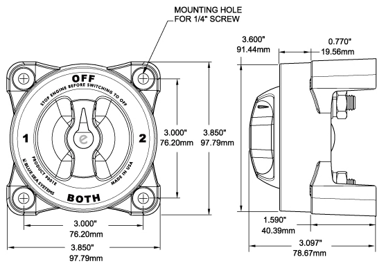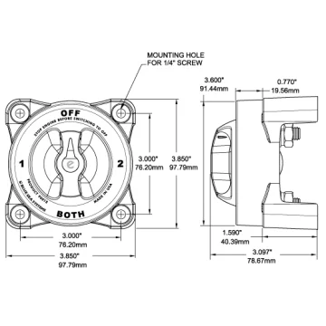 Terminal Ebadı: 1/2" Blue Sea Systems devre kesici. Ağır hizmet tipi. Kıvılcım yapmaz, panel arkası ya da yüzey montajı yapılabilir. Sürekli: 600A Maksimum: 2750A (10sn) Voltaj: Maksimum 48V DC Gövde Materyali: Lexan® Polikarbonat Terminal Ebadı: 1/2"