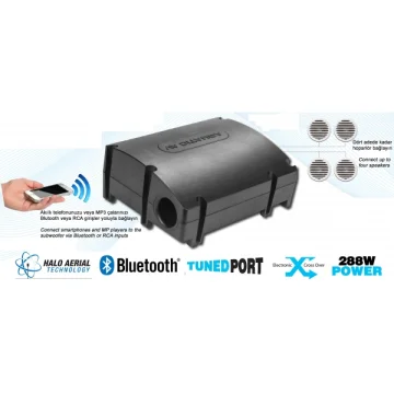 Bluetoothlu Aktif Marin Subwoofer AQ-SWA6 aktif marin subwoofer, dahili Bluetooth bağlantısı bulunan, dört adete kadar hoparlör bağlantısı sağlayan cross-over bağlantılı 288W anfili, yüksek kaliteli, sağlam ve dayanıklı marin subwoofer’dır.