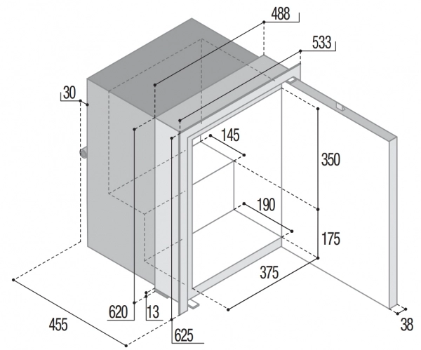 12/24V DC. Paslanmaz çelik kapı ve çerçeveli.
