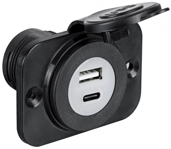 Standart USB ve Type C. Toz kapaklı. DC 12/24V giriş. DC 5V/4.8A çıkış. Panele montaj yapılabilir.