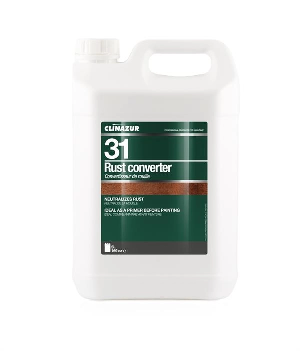 31 Pas Dönüştürücü, bir korozyon önleyici formülasyondur. Tüm metaller üzerindeki pası koruyucu bir bariyere (organo-metalik bileşik) dönüştürür. Oksidasyona maruz kalan parçaları korumak için mükemmel bir şekilde uygundur ve boyamadan önce astar olarak da kullanılabilir. İşlem görmüş yüzeyler, oksidasyonun ağırlaşma riskini almadan deniz suyuyla güvenli bir şekilde temas halinde de olabilir.