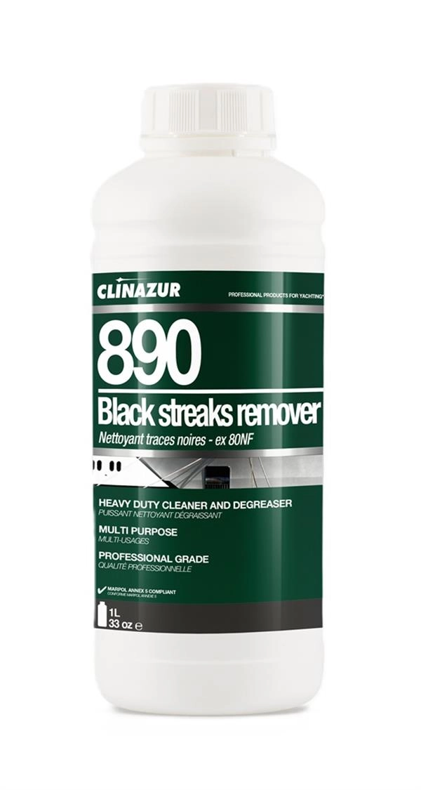 Clin Azur'ün 890'ı çok amaçlı bir alkali deterjandır. Bu ürünü, güvertelerdeki, su hatlarındaki, egzoz çıkışlarındaki, yelkenlerdeki ve brandalardaki siyah izleri hızlı bir şekilde çıkarmak için geliştirdik. 890, yağ çözme etkisini artırarak sintine (bilge) ve makine dairelerinin temizliğini basitleştirir.