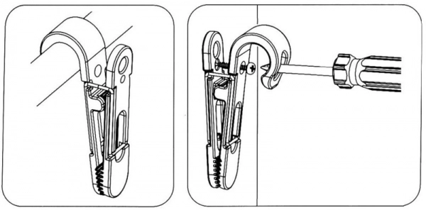 Çok amaçlı mandal Yüzeye vida ile sabitlenebilir veya Ø 22/28 mm vardavelaya geçirilerek kullanılabilir.