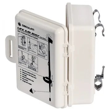 Kurtarma sistemi, sağlam bir ABS kutuya sığdırılmıştır. Denize birinin düşmesi durumunda, anında konuşlanabilmesi için Ø 25 mm pulpite asılı olan kutuyu açın ve suya atın. Denizdeki kişi şişirilmiş bir kurtarma cihazının yanı sıra oldukça görünür bir direk ve ışık bulacaktır. Halkalı cankurtaran simidi ve yerleşik 260 cm'lik direk, yüzer çıpa, acil durum ışığı, yansıtıcı bant, ağırlık ve kayış içerir. Yüzerlik 275N. 290x230x125 mm. 4.8 kg.