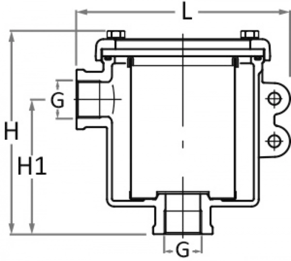 Deniz suyu filtresi. Gövdesi pirinç üzeri nikelaj, filtre elemanı ve diğer aksam paslanmaz çeliktir. Deniz suyu filtresi.