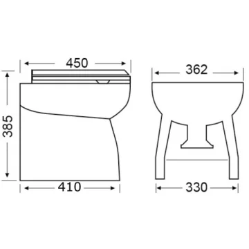 Elegant elektrikli tuvalet. Elegant elektrikli tuvalet. Son derece sessizdir. Çanak porselen, klozet kapağı lakedir. Her sifonda 2.5 litre su tüketir. Basınçlı suyla çalışır (Teknenin genel su tesisatına veya hidrofora bağlanmalıdır). Pis su tankına akuple edilmelidir. Kontrol paneli standarttır.