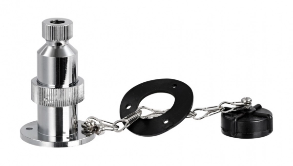 Fiş ve priz. Su geçirmez. Kromaj. Fiş ve priz su geçirmez kromaj. DC 12/24V-5A. İki pimli. Ø 45 mm.
