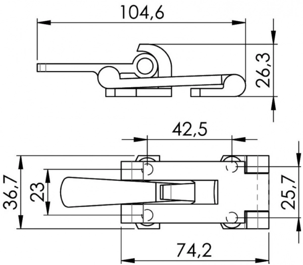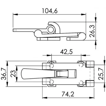 Gergili kilit, paslanmaz çelik.36x72mm. Gergili kilit, paslanmaz çelik.