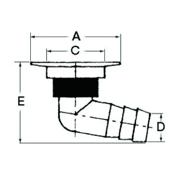 Güverte su tahliye firarı. 100°, beyaz, plastik.