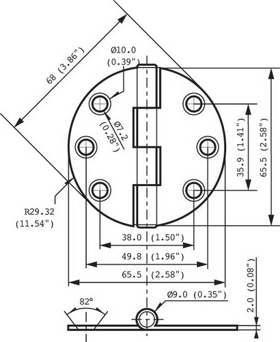 Kapaklı menteşe. 65.5mmx65.5mm