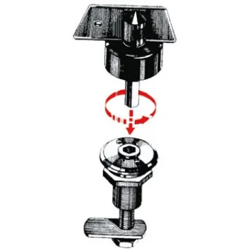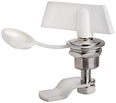 Kilit. Sarı üzeri kromajdan mamul, 90° dönüşlü. Özel tutamaklı kilit sistemlidir. Boyun Ø 20 mm. Montajlı halde boynun çalışma uzunluğu 19 mm. İki çeşit (15 ve 38 mm) dil dahildir.