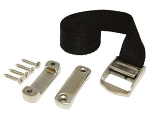 MARINE TOWN Akü sabitleme kemeri. AISI 316 paslanmaz çelik bağlantı elemanları ve tokası. 96 cm boyunda 25 mm eninde kayışlı.
