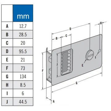 Mobella sürgü kapı kilidi. Model Flush. Mobella sürgü kapı kilidi,watertight. Model Flush. 10-12,7mm kalınlığındaki dış mekan kapıları için. Gömme tip kilit tasarımı ile öngörülen kalınlıkta kapılara kolayca monte edilir. Güvenlik sistemi ile kapının içeriden kilitlenmesi engellenmiştir.