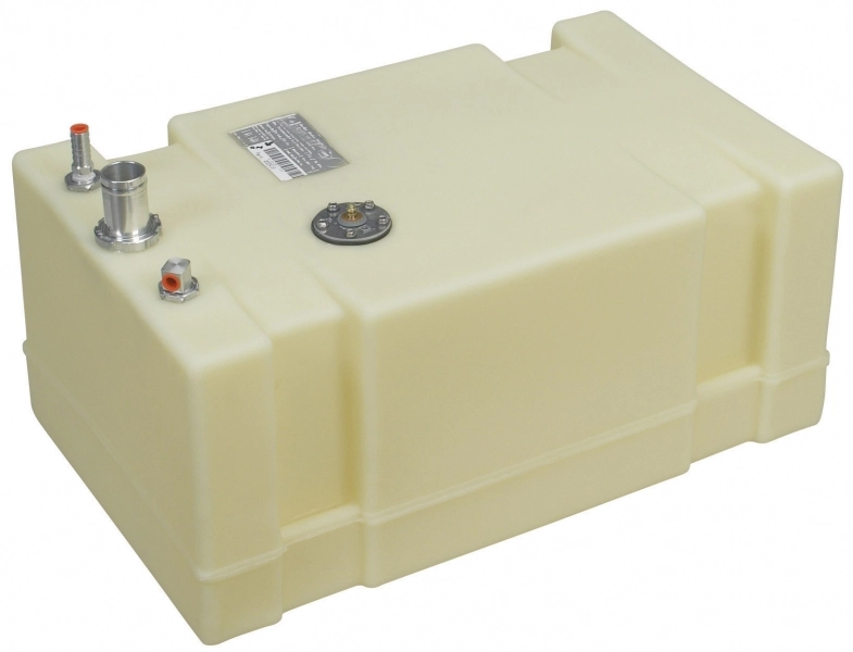 Moeller güverte altı yakıt tankı. Polietilen yapısıyla korozyona, darbelere mukavimdir. 3/8˝ yakıt çıkışı 360º dönebilir. Alüminyum dolum ağzı, yakıt ve havalandırma çıkışları tank kabuğuna direkt monte edilmiştir. Şamandıra standarttır (33-240 ohm). Benzin için uygundur, uygun opsiyonel kit ile mazot için de kullanılabilir. Dolum ağızı dahil tank yüksekliği için, verilen yüksekliğe 54 mm ekleyiniz.