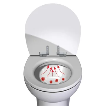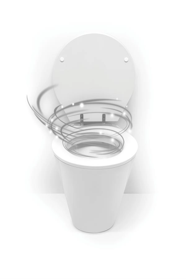 Sistem, tuvaletin kenarında yer alan bir emme sistemi sayesinde kokuları ve biyo-aerosolleri kaynağında yakalar. Bu sayede bu parçacıkların havaya yayılması engellenir.