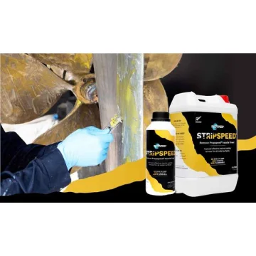Propspeed uygulayıcılarının metal yüzeyleri yeniden uygulama için hazırlamasına yardımcı olmak üzere geliştirilen Stripspeed, kirlenmeyi önleyen kaplamaları 30 dakika veya daha kısa sürede kaldırır. Yoğun kıvamı dikey ve baş üstü yüzeylere kolaylıkla tutunarak kullanımı kolaylaştırır ve karıştırmaya gerek kalmaz. Sadece sallayın, dökün ve gidin. Stripspeed yanıcı değildir, yakıcı değildir, DCM ve NMP içermez. Taşlama veya aşındırıcı kullanmanın aksine, Stripspeed birden fazla yenileme nedeniyle mekanik aşınmaya neden olmaz ve havada asılı parçacıklar veya döküntüler oluşturmaz, böylece metalin ömrünü uzatır.