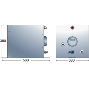 Paslanmaz çelik gövdeli Quick Nautic Boiler´ler 220 V AC (+/- %10) veya motor devir-daim suyu ile çalışabilir.