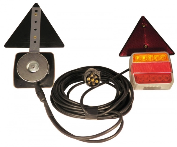 Ledli ve reflektif üçgenli. Manyetik montajlı (Mıknatıslı). Merkez kablo 7.5 metre boyunda ve 7 soketli fişli. Lambalar arası kablo 2.5 metre.