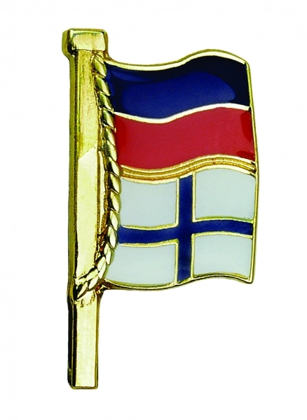 Uluslararası işaret bayrağı kodlarını kullanarak gizli anlamlar gösteren altın kaplama ve mineli rozet.