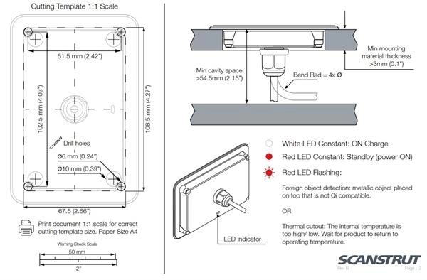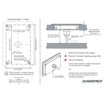 Bu su geçirmez ve kablosuz şarj cihazı, iç veya dış mekanlarda herhangi bir düz yüzeye takılabilir.