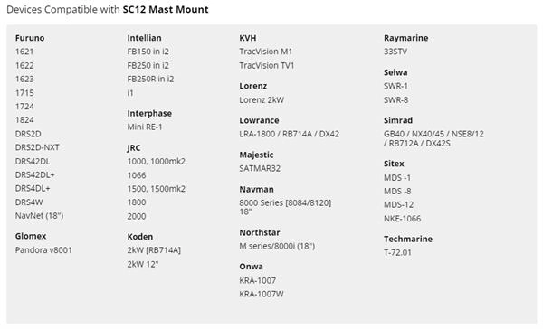 Sabit direk platformları. 2kW ve 4kW radome antenler için uygundur. Yelkenli teknelerde radar montajı için en çok tercih edilen modeldir. Beyaz polyester toz boyalıdır. Tüm üreticilerin antenleriyle uyumludur. Direğe giriş için su geçirmez kablo geçişi bulunur. Plastik rondela sistemi boyayı korur.