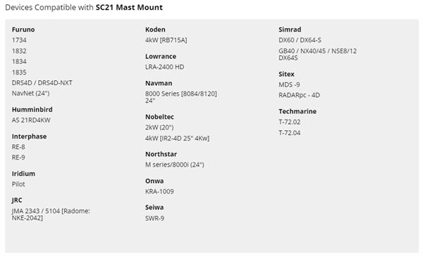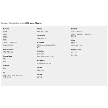 Sabit direk platformları. 2kW ve 4kW radome antenler için uygundur. Yelkenli teknelerde radar montajı için en çok tercih edilen modeldir. Beyaz polyester toz boyalıdır. Tüm üreticilerin antenleriyle uyumludur. Direğe giriş için su geçirmez kablo geçişi bulunur. Plastik rondela sistemi boyayı korur.
