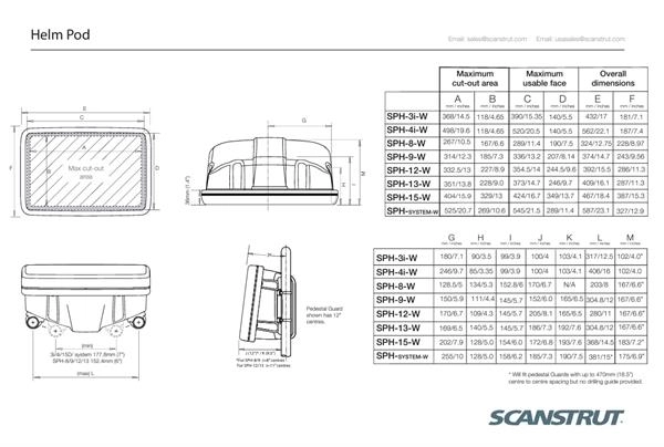 SCANSTRUT Dümen üstü scanpod. ChartPlotter ve radar ekranları, göstergeleri ile birlikte dümen önüne monte etmeye imkan verir. Tüm 9.5” ve 12” standart dümen pedestallarına uygundur. Her marka cihaza uyması için kesilmemiş olarak gelir. Paslanmaz montaj malzemeleri içindedir. Scanstrut, ekipmanları su geçirmez conta ile korur.