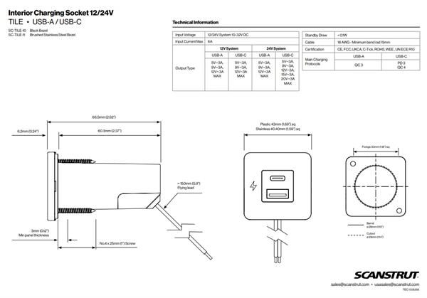 Tile USB HIZLIDIR! 12V sistemde 36W'a veya 24V sistemde 60W'a kadar şarj eder. Bu, onu modern dizüstü bilgisayarları ve büyük tabletleri, telefonları ve tekneeki diğer USB-C ile çalışan cihazları şarj etmek için mükemmel hale getirir.