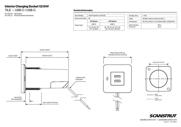 Tile USB HIZLIDIR! 12V sistemde 36W'a veya 24V sistemde 60W'a kadar şarj eder. Bu, onu modern dizüstü bilgisayarları ve büyük tabletleri, telefonları ve tekneeki diğer USB-C ile çalışan cihazları şarj etmek için mükemmel hale getirir.
