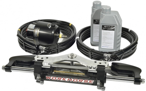 200 HP üzeri dıştan takma motorlar için. Ağır hizmet tipi. 6.3 dümen turu. Dümen kutusu, silindir, hidrolik sıvı, fitingler ve 7 metre hidrolik hortum setinden oluşan komple kit.