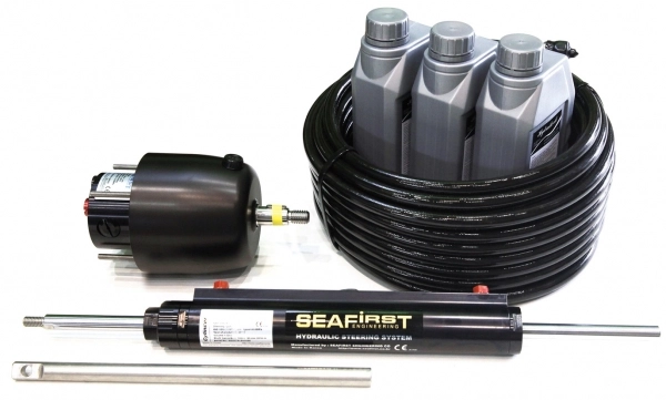 Power assist’li olmayan kuyruklu motorlar için. 4.4 dümen turu. Dümen kutusu, silindir, hidrolik sıvı, fitingler ve 20 metre hidrolik hortumdan oluşan komple kit.