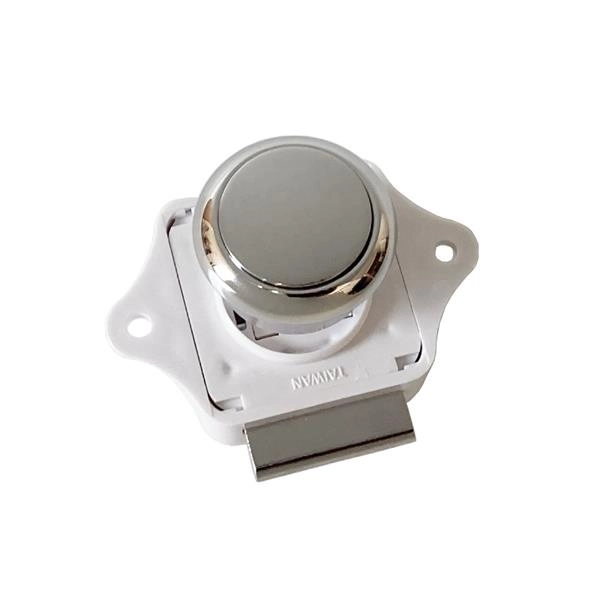 SEAWORLD Çekmece/dolap kulbu. Butona basıldığında, buton gizlenerek kilitlenir, tekrar basıldığında kilit çıkar ve kapı açılır. Gövde özel plastik üzeri kaplama. 16-25 mm arası panel kalınlıklarına uygulanabilir. Ø 25 mm. Tip:Kromaj