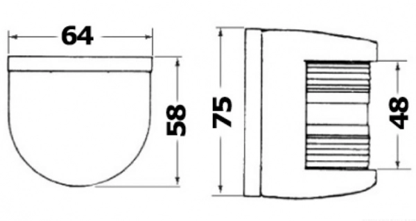 Portakal kabuğu yüzeyli polikarbon malzemeden üretilmiştir, IMCO standartlarına uygundur. Kurulumu kolay, % 100 su geçirmez; lamba soketleri ve ampul dahildir. 12 metreye kadar tekneler için tip onaylı olup RINA tip onay sertifikası mevcuttur. 12V/10W. 2 mile kadar görünürlük