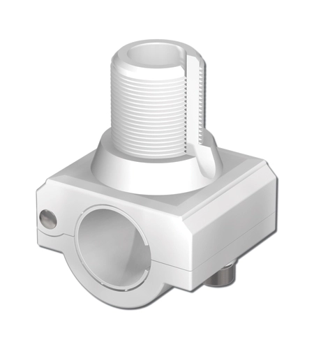 Shakespeare 4722 anten montaj braketi. Plastik. Ø 22/25 mm yatay vardavela ve pulpite yatay kolayca monte edilir. Braketin altından çıkışlı kablo geçiş yuvasına sahiptir. Standart Ø 1”, 14 pasoludur.