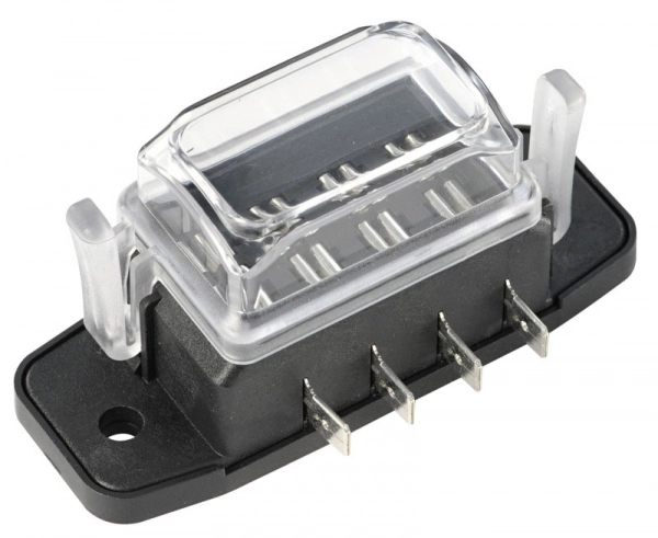 Sigorta bloğu, şeffaf kapaklı. Oto tipi ayaklı sigortalara uygun.