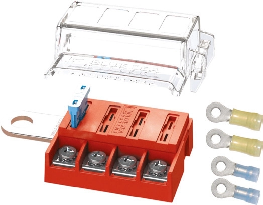 ST-BLADE Akü Terminaline Montajlı Sigorta Bloğu Kolay monte edilebilir 4 adet ATO®/ATC® sigorta bloğu. Muhafaza kapağı ve 1 adet sigorta dahil.