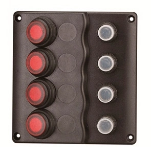 Su geçirmez sigorta paneli. 12V DC Su geçirmez sigorta paneli. 12V DC. Dalga dizaynlı. UV ışınlarına mukavim siyah plastik. 15A otomatik sigortalı ve led indikatörlü UL onaylı su geçirmez switch’li.