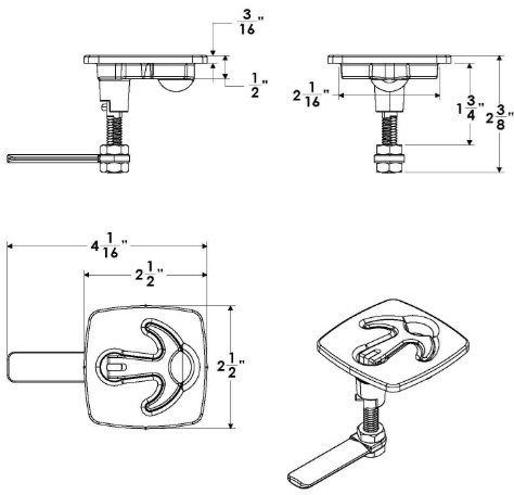 Gömme kulp. Paslanmaz çelik. Taco Marine gömme kulp. Paslanmaz çelik. 63x63 mm.