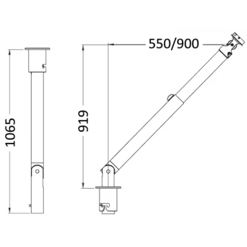 Teleskopik Matafora Eloksallı alüminyumdan yapılmıştır. Toplanmış pozisyondayken, yürüme yüzeyinin altına gizlenir. Hem pasarella hem de dingi için çift makara ve iskota bağı ile donatılmıştır. İki çalışma pozisyonu; tekne ile aynı hizada (dingi tutma) veya iç kısımda 20° eğimli (pasarella tutma). Teleskopik kısım çeşitli konumlarda ayarlanabilir ve farklı dingi türleri için mükemmel ayar sağlar. Çifti için yük kapasitesi 180 kg.